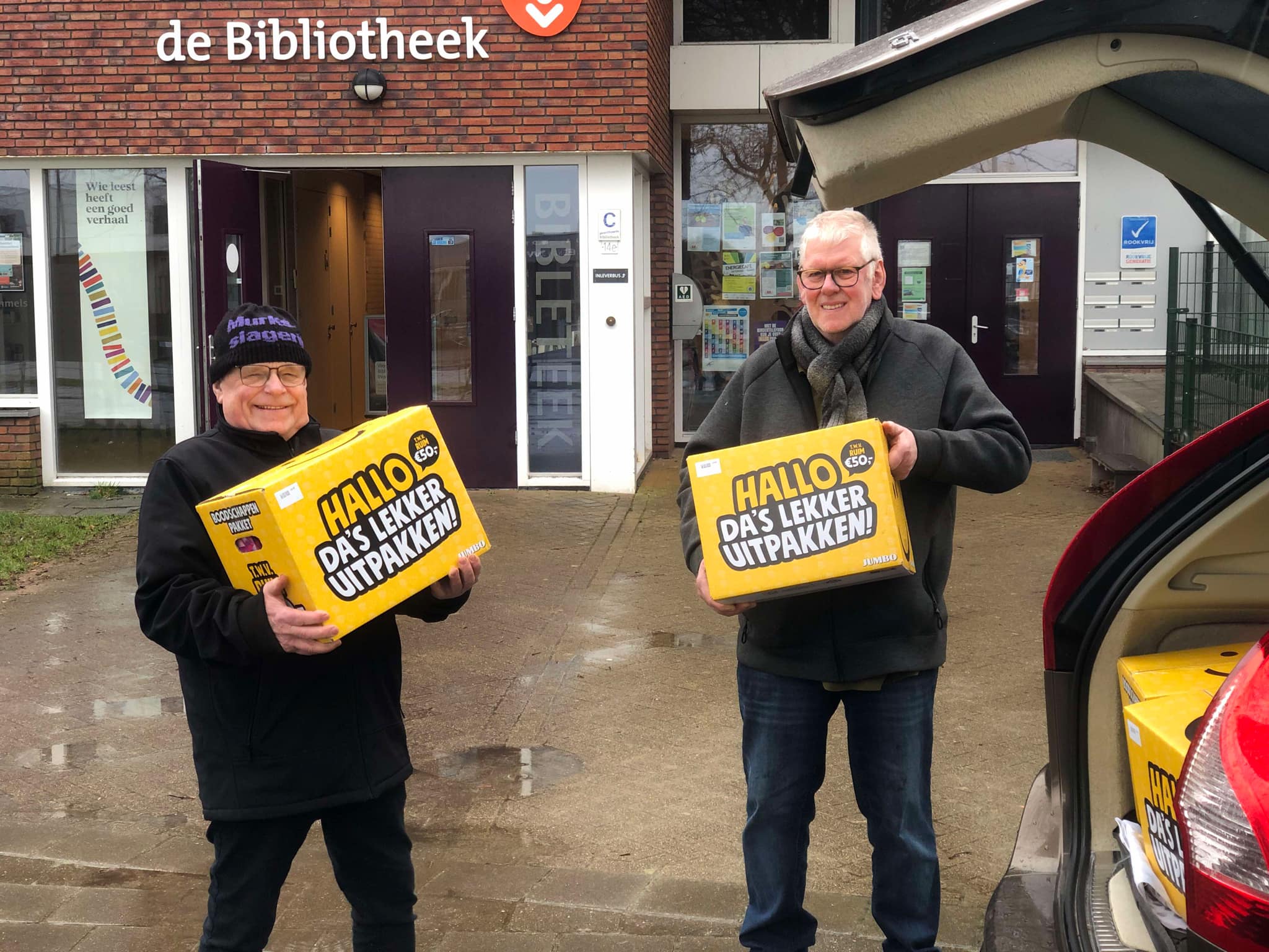 Afgelopen week hebben wandelgroep Beweech Wommels en bewoners aan de Terp en ’t Noard zegels ingezameld voor dozen met boodschappen. Vandaag hebben zij 8 dozen overhandigd aan de medewerkers van de bibliotheek. De inhoud wordt gebruikt om de weggeefkast aan te vullen.