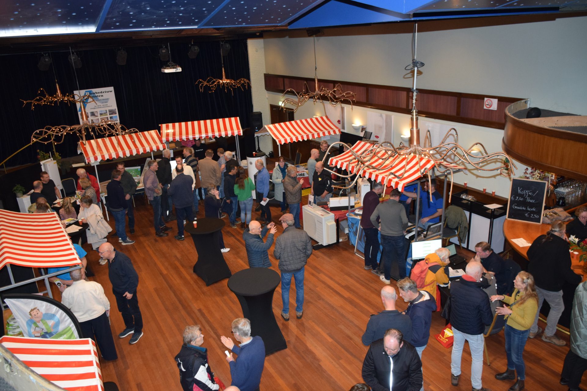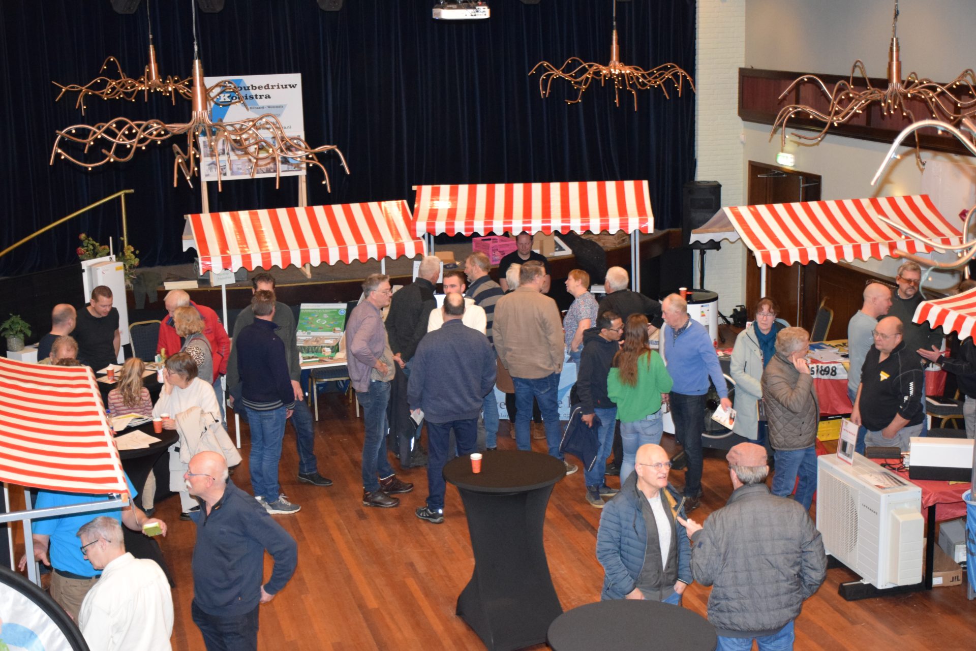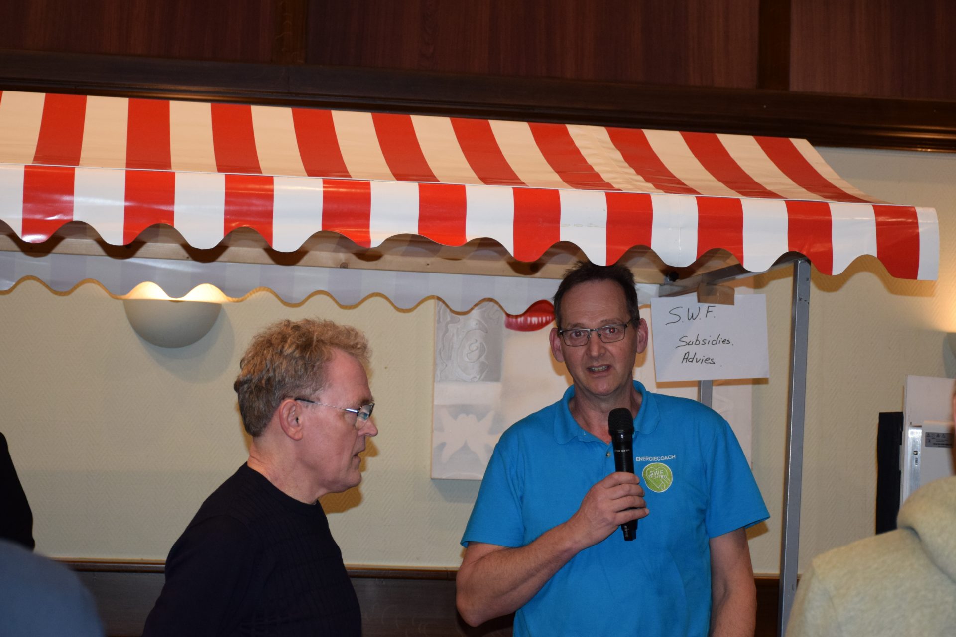 Standhouders waren: de Smit Isolatiegroep met diverse isolatiematerialen, De Wolk Glas met verschillende soorten isolerend glas, de Friese Milieufederatie met info over biobased isolatiemateriaal, Bouwbedrijf Kooistra Kûbaard/Wommels met duurzaam bouwen, Installatiebedrijf Lukkes met warmtepompen, zonnepanelen en thuisbatterijen, Koning Installatie met thuisbatterijen en zonnepanelen, Atsun over slimme energieoplossingen, Confin van Pier Zwerver uit Wommels over energieadvies en energielabels, Henk Zegwaard van Betaalbaar Gasloos over voordelig vervangen van CV door warmtepomp, Zwembad De Klomp over heatpipes waar ze tegenwoordig het zwembadwater mee verwarmen, de Gemeente SWF met energiecoaching en info over subsidies en de WEK met energiecoaching, warmtebeeldcamera en energieadvies.