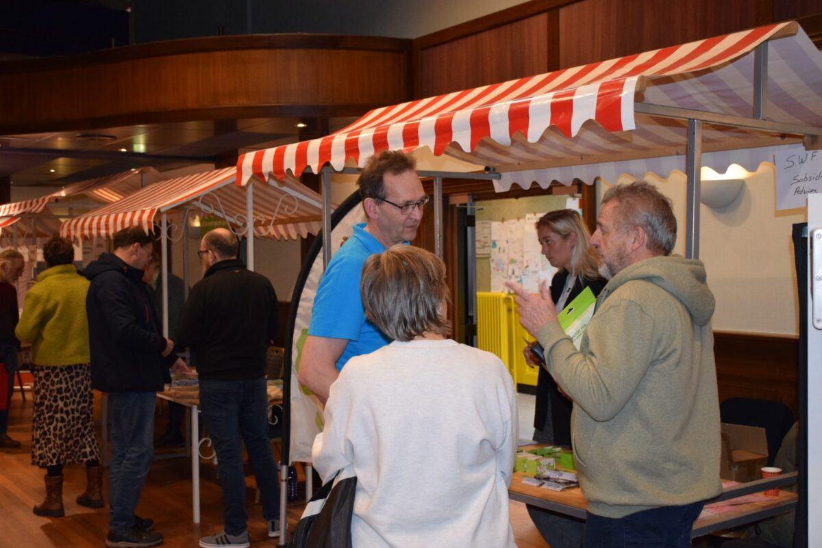 Het Energie Café van vorige week zaterdag was met een groot aantal bezoekers een mooi succes. De WEK had het georganiseerd met Doarpsbelang Wommels en de gemeente Súdwest Fryslân. De standhouders pakten flink uit in de marktkramen die we in de grote zaal van It Dielshûs hadden neergezet. Er was een scala aan aanbod op het gebied van isoleren en verduurzamen. De bezoekers hadden veel belangstelling voor wat de standhouders presenteerden en konden goed met hun vragen op het gebied van duurzaamheid terecht. Kinderen die met hun ouders waren meegekomen werden leuk opgevangen door Berber Sieperda met spelletjes en knutselwerk. De kinderen van de basisscholen van Wommels hadden in de aanloop naar het Energie Café mooie tekeningen gemaakt over duurzaamheid, die hingen in de hal van It Dielshûs. Een mooie uitspraak op een van de tekeningen: “Maak de wereld mooier en beter. Dat moet!”