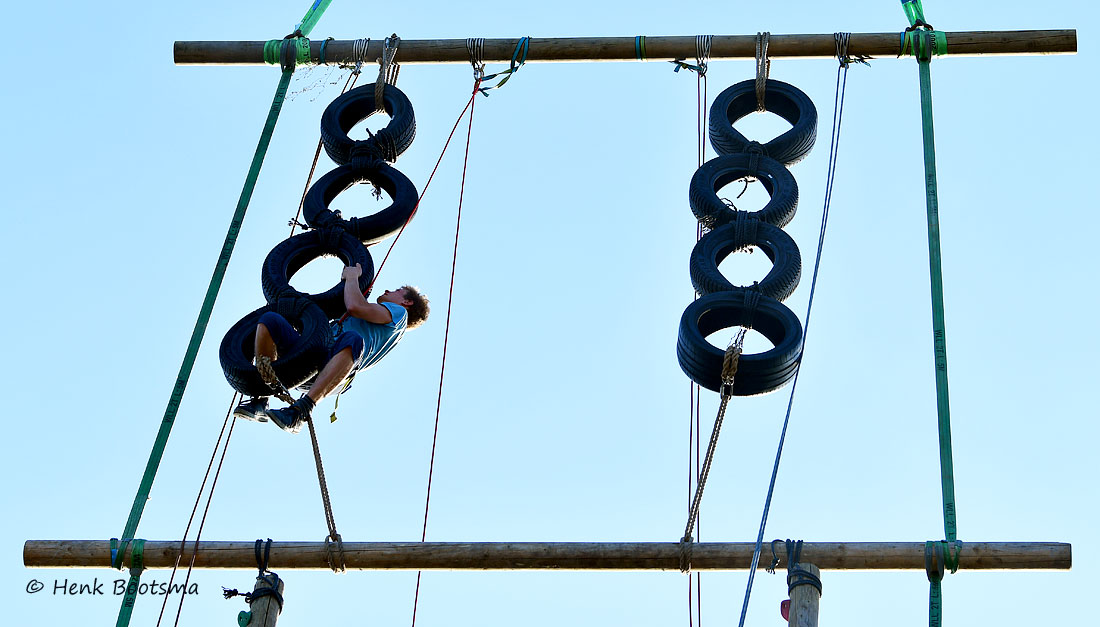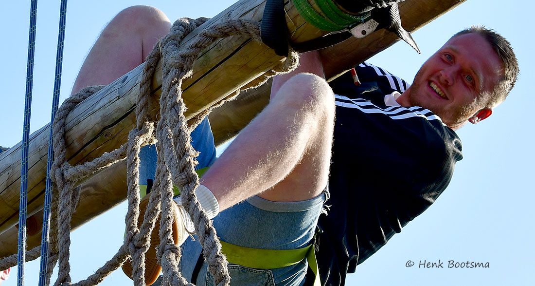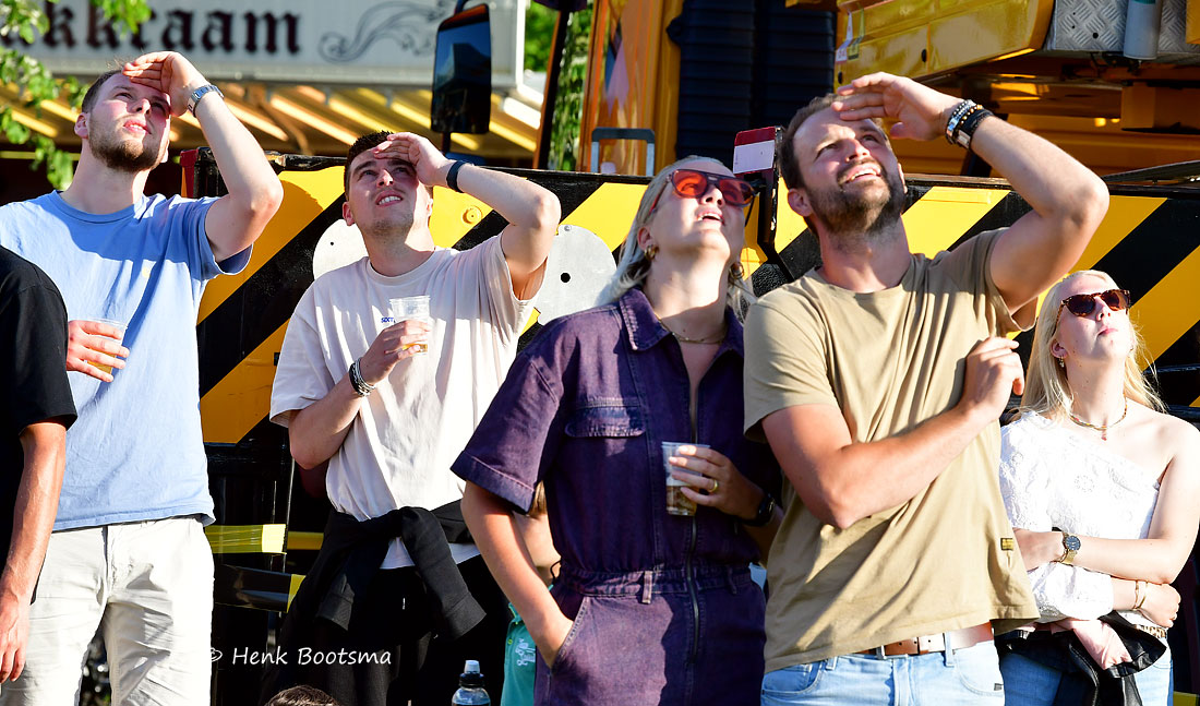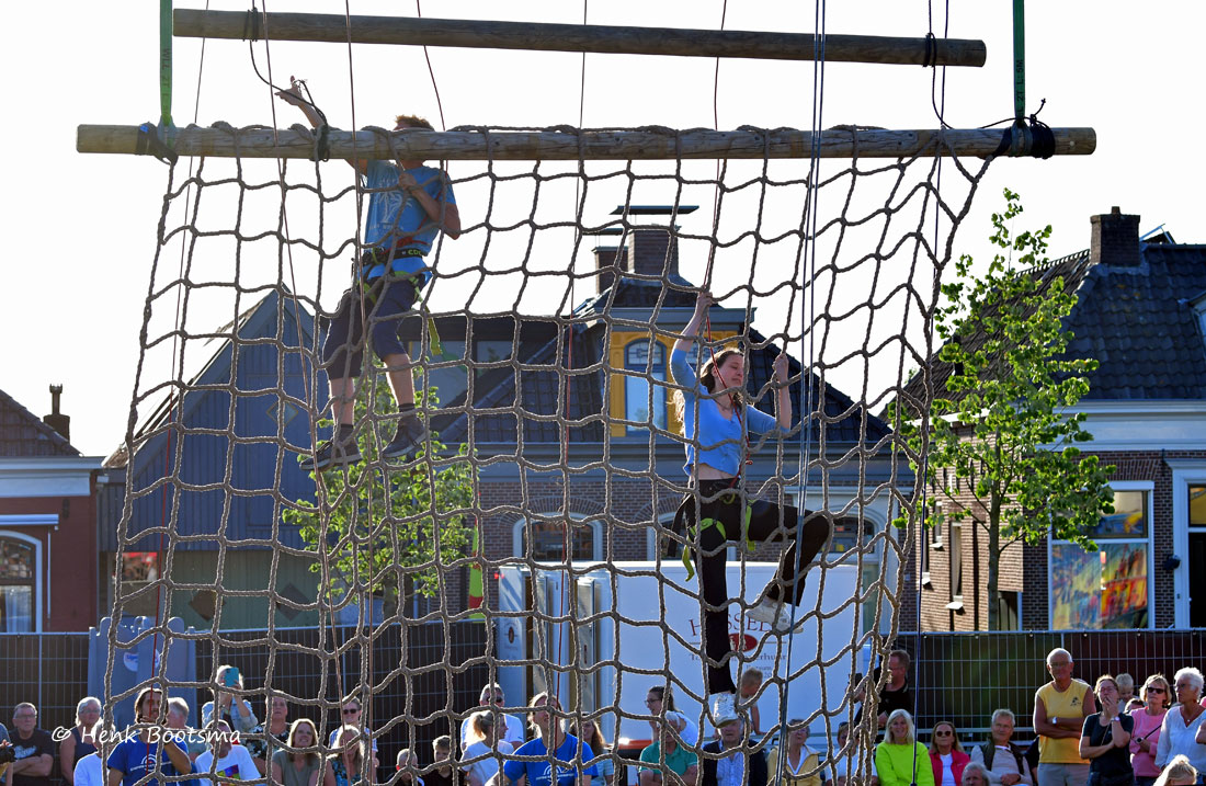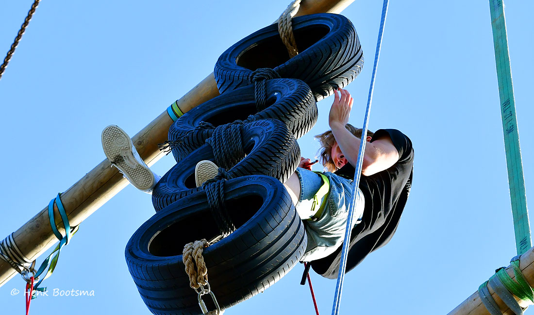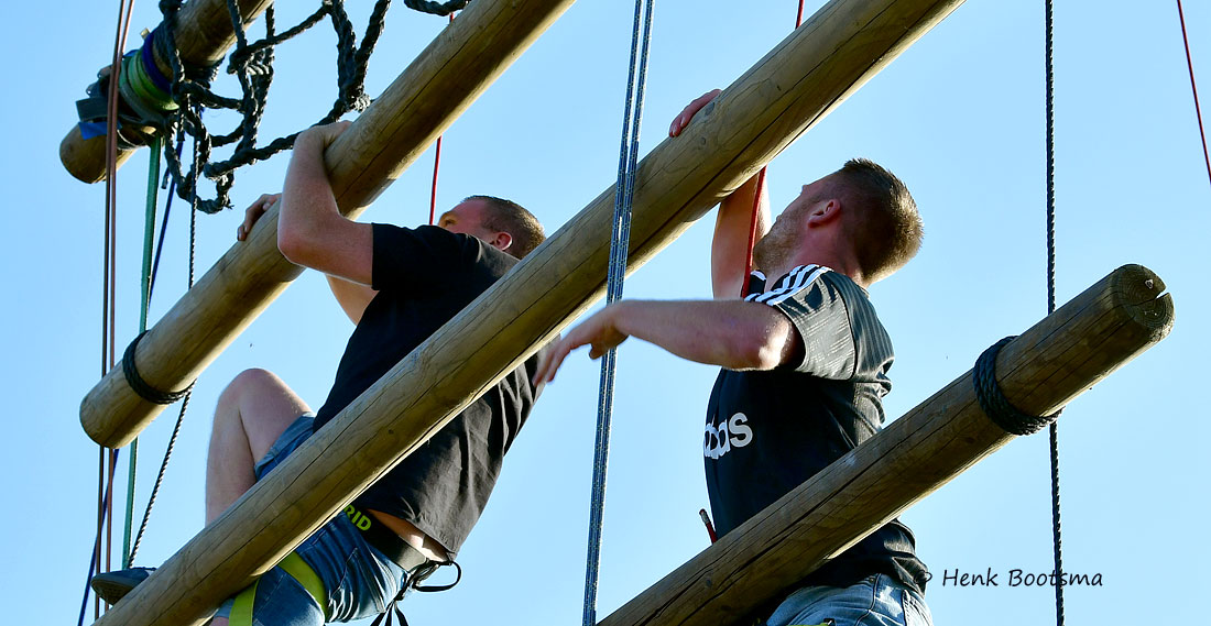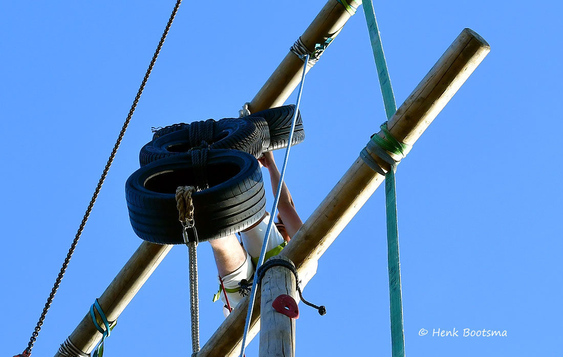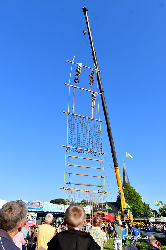 Gister was de eerste dag van de Dorpsfeesten 2025, thema Wommels aan Zee. Henk Bootsma maakte wat foto’s van het spectaculaire Kraaijennest. Wie de bovenste balk op 25 m hoogte als eerste aantikte had gewonnen.