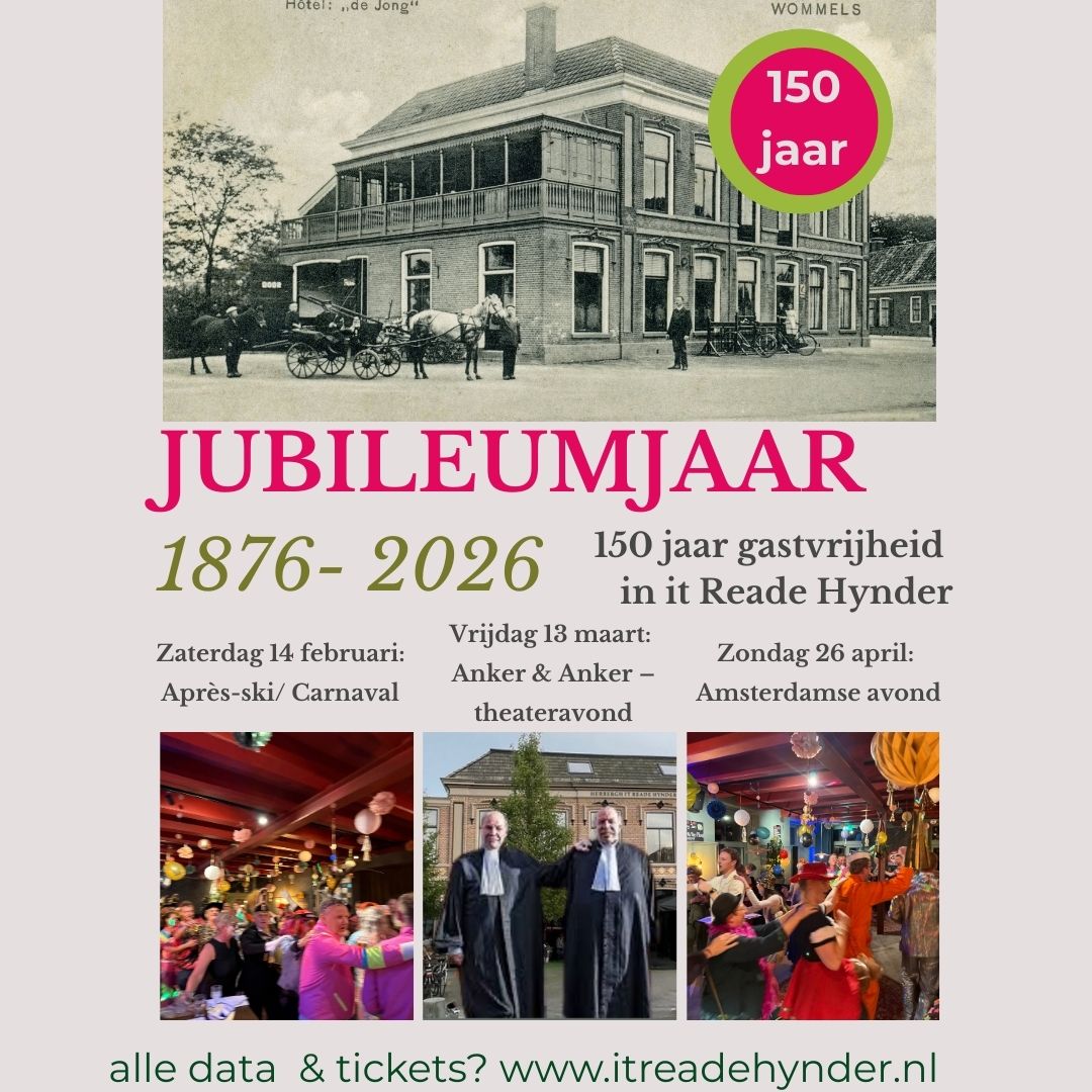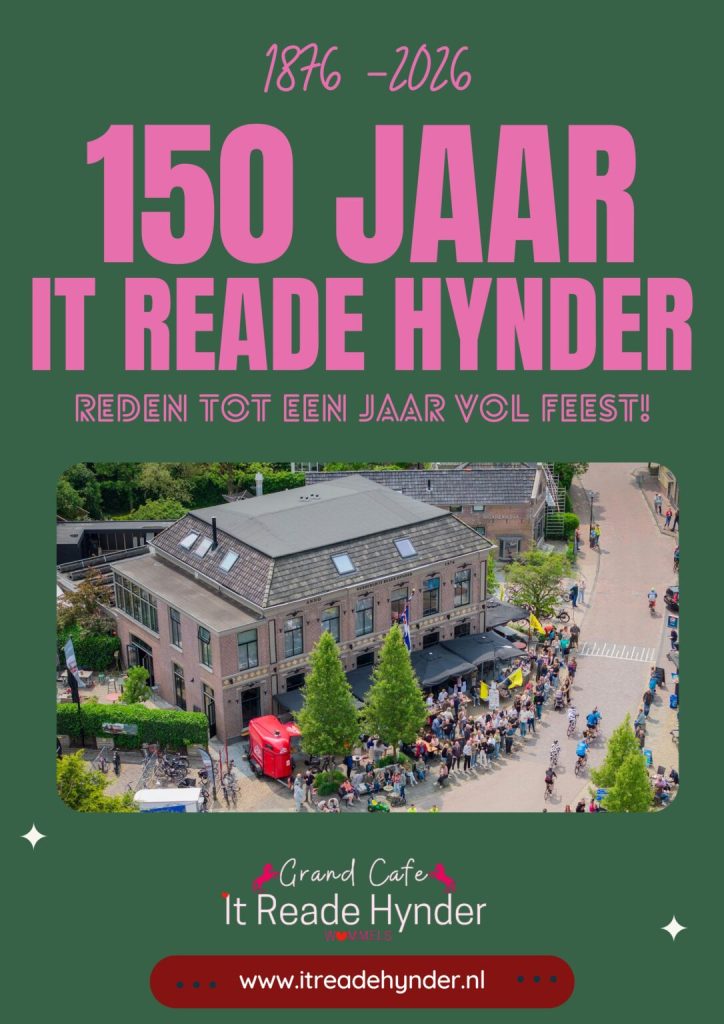 Dit jaar bestaat Café It Reade Hynder 150 jaar. Een bijzonder moment in de geschiedenis van Wommels én van het pand, dat al generaties lang een plek is van ontmoeting, gastvrijheid en verhalen. Een mijlpaal waar we met trots bij stilstaan, juist omdat dit café door de jaren heen door verschillende families is gedragen en gevormd.
