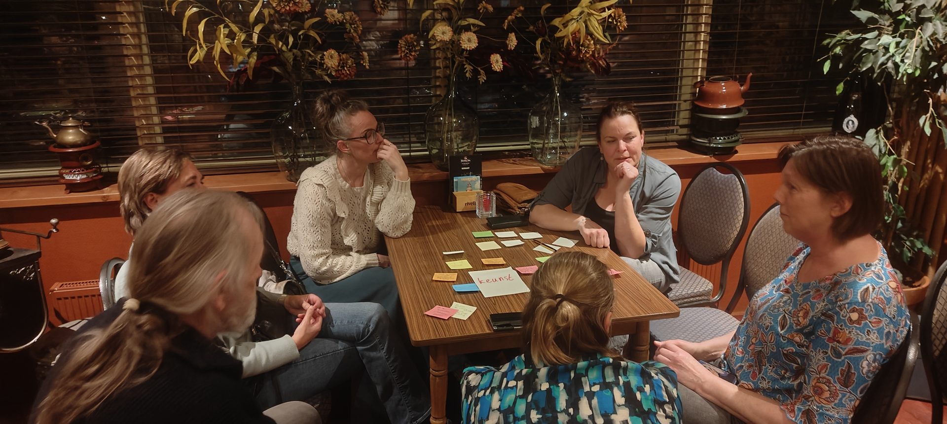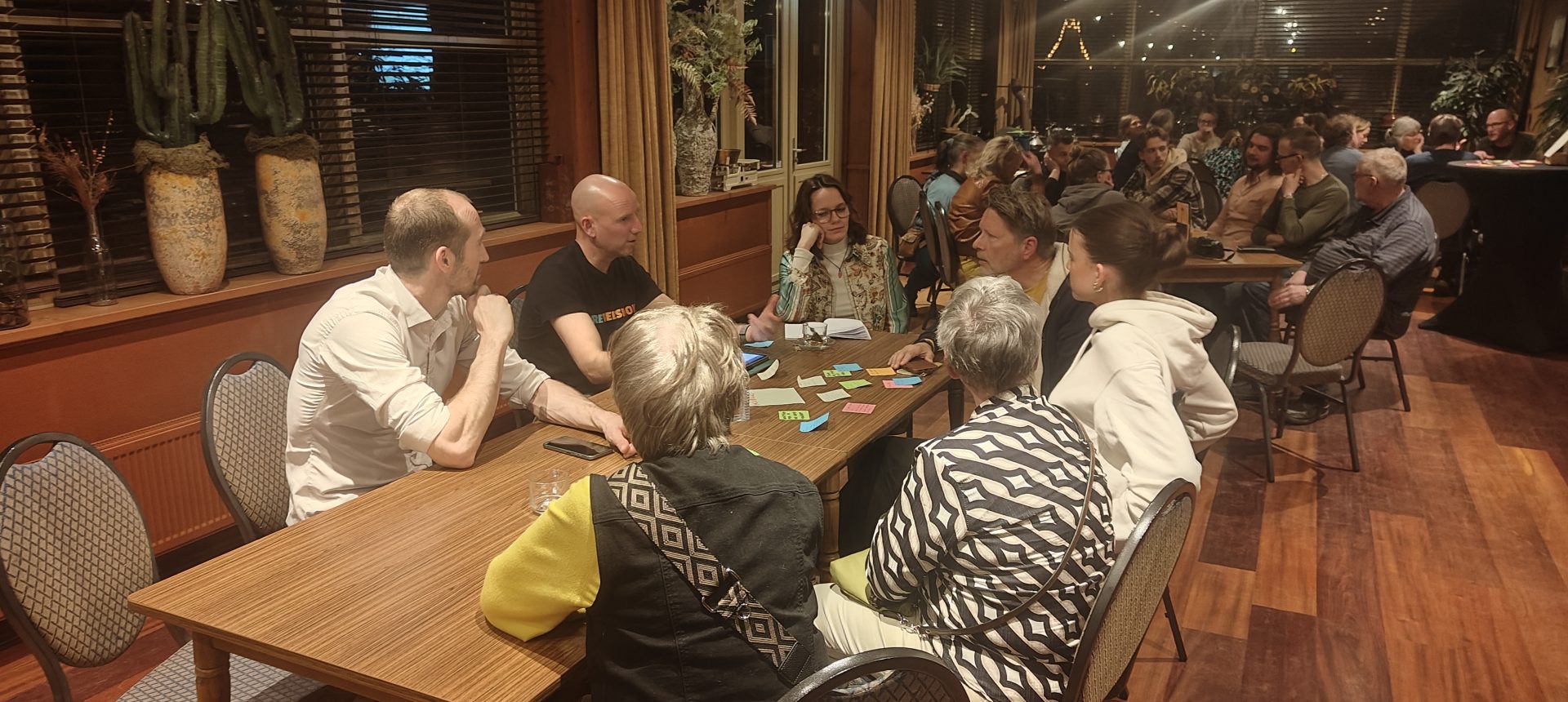 De avond begon met een inleiding van Marc Bulthuis van Fryslân Bloeit over Fryslân Bloeit en de opzet van een bloeiweek in Wommels. Daarna legden presentatoren Teade de Boer en Tsjeard Hofstra de opzet in Wommels uit en nodigden de aanwezigen uit allerlei ideeën op kleine briefjes te schrijven. Deze werden op de thema’s ingedeeld, waarna verschillende groepen werden gevormd rond die thema’s. De groepen gaan de de thema’s verder uitwerken.