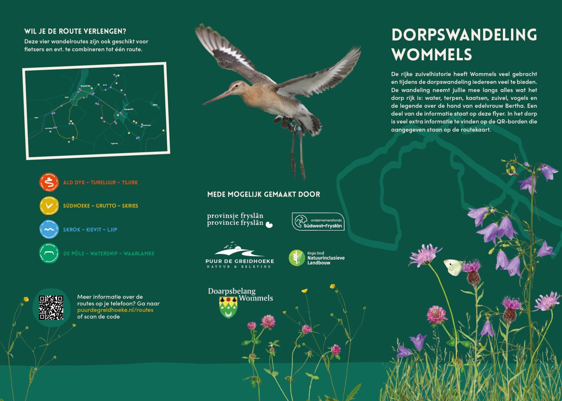 Aant Hofstra, Johan Wagenaar en Meinte Wesselius hebben de koppen bij elkaar gestoken en samen met Puur Greidhoeke een dorpswandeling ontwikkeld door Wommels. Door QR-codes te scannen vindt u op 25 plaatsen in Wommels een website vol informatie over de plek waar u op dat moment staat.