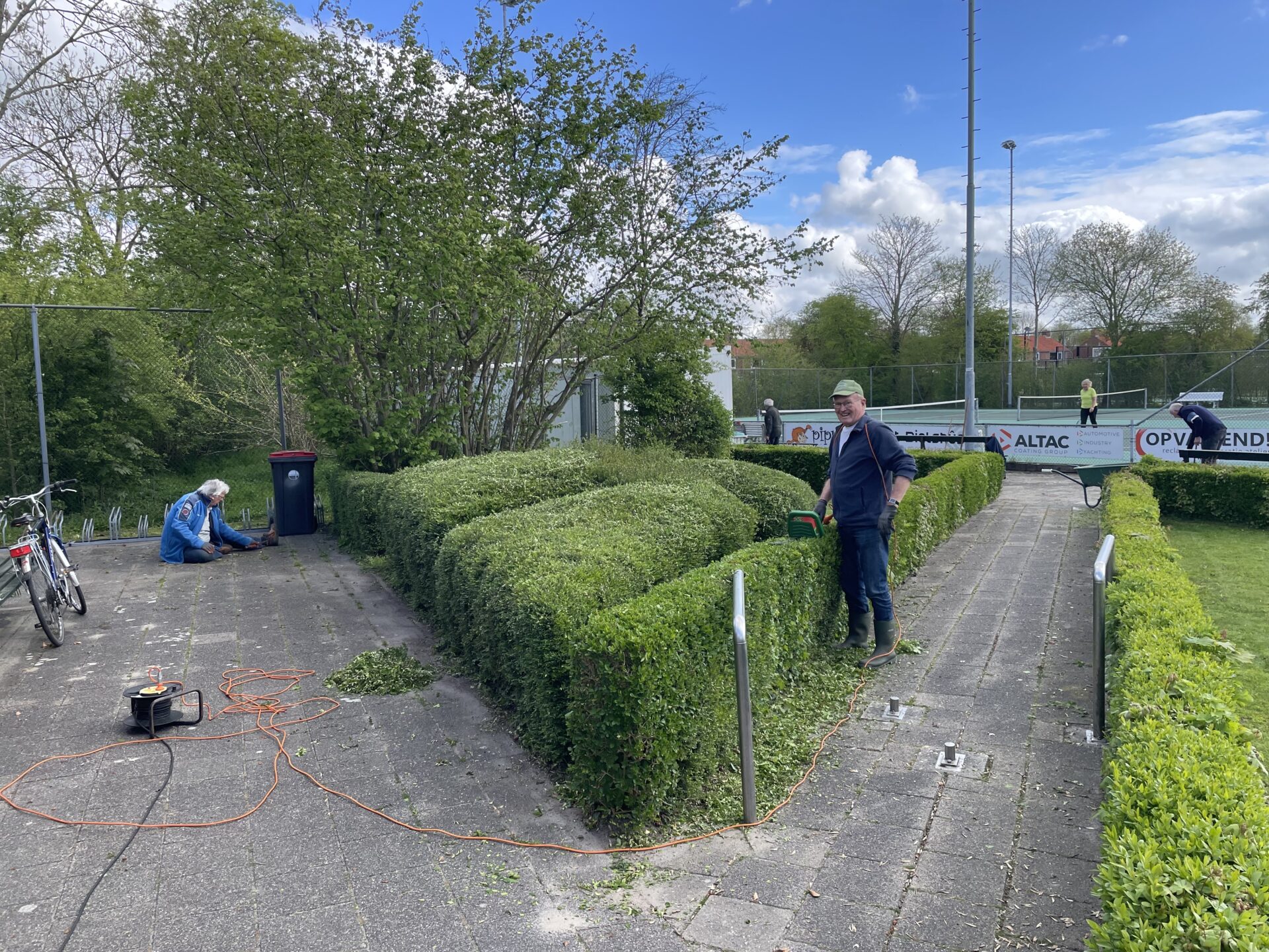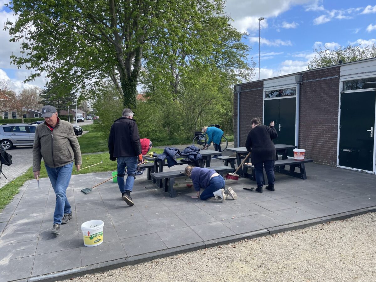 Moandeitemoarn waard der oan beide kanten fan de tenniskantine hurd wurke. Op de Jeu de Boules baan en by de tennisbaan wienen frijwilligers drok dwaande om it grien yn te damjen. Want mei in baan allinnich binne jo der net. It moat ek ûnderhâlden wurde. Hulde oan alle frijwilligers fan Wommels.