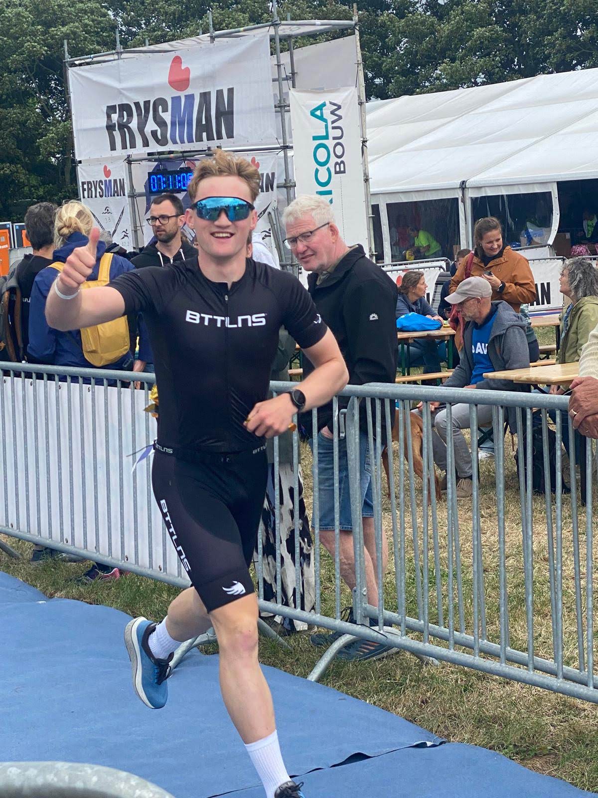 Op video de finish van Tom en een interview van Jelle B. met Niels Boonstra van de Triathlon Wommels.